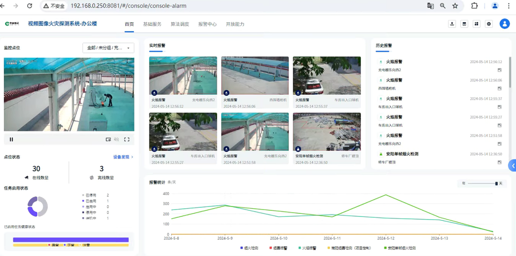 針對高價值原料倉儲區(qū),AI平臺7*24小時運行,及時發(fā)現(xiàn)初期火災(zāi),累計攔截3起重大隱患,避免超百萬元燃爆風(fēng)險損失。