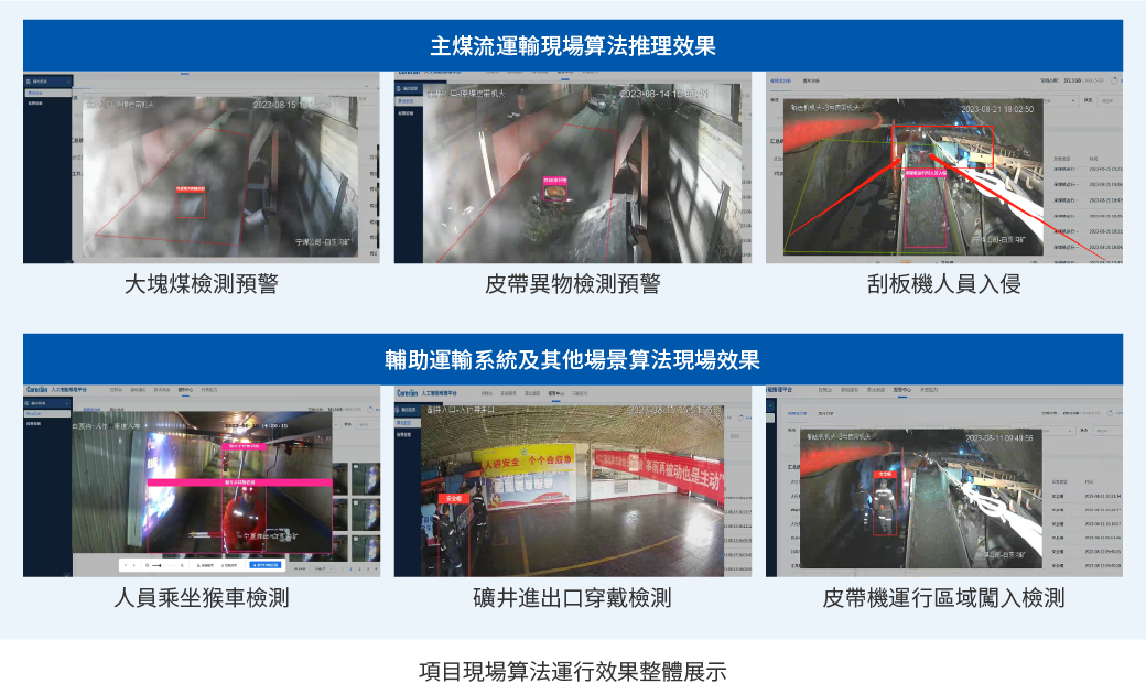 鯤雲(yún)科技助力寧煤白芨溝煤礦建設(shè)工業(yè)影像智能分析系統(tǒng)應(yīng)用,覆蓋採煤工作面、掘進工作面、主運輸系統(tǒng)、輔助運輸系統(tǒng)及其他井下關(guān)鍵場景,基於煤礦AI智慧安全管理監(jiān)測平臺,提供人員違規(guī)闖入、未穿戴安全著裝、採煤機 / 刮板機等設(shè)備運行狀態(tài)、皮帶跑偏/大塊煤/異物/載人跨越、猴車超長超寬檢測、煙霧火焰識別等10餘種AI算法,實現(xiàn)井上井下生產(chǎn)運行場景異常情況的智能識別和即時預(yù)警。